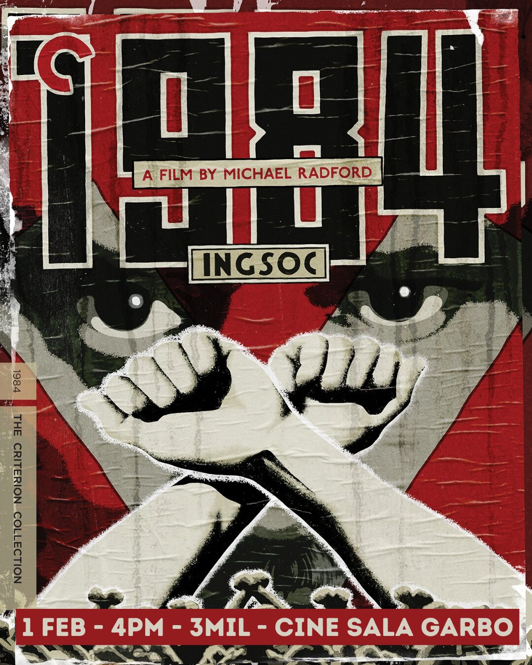Calificación: +18. Sinopsis: El futuro, año 1984. Winston Smith (John Hurt) soporta una abyecta existencia bajo la continua vigilancia de las autoridades de la Oceanía totalitaria. Pero su vida se convertirá en una pesadilla cuando pruebe el amor prohibido y cometa el crimen de pensar libremente. Enviado al siniestro “Ministerio del Amor”, se encuentra a merced de O’Brien (Richard Burton), un cruel oficial decidido a destruir su libertad de pensamiento y a quebrantar su voluntad.