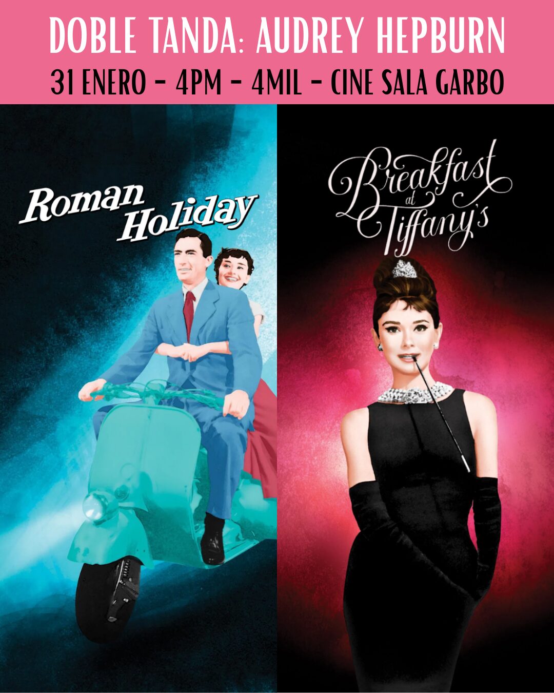 Entrada válida para las dos películas. Doble Tanda de la icónica Audrey Hepburn con Roman Holiday y Breakfast at Tiffany’s.
