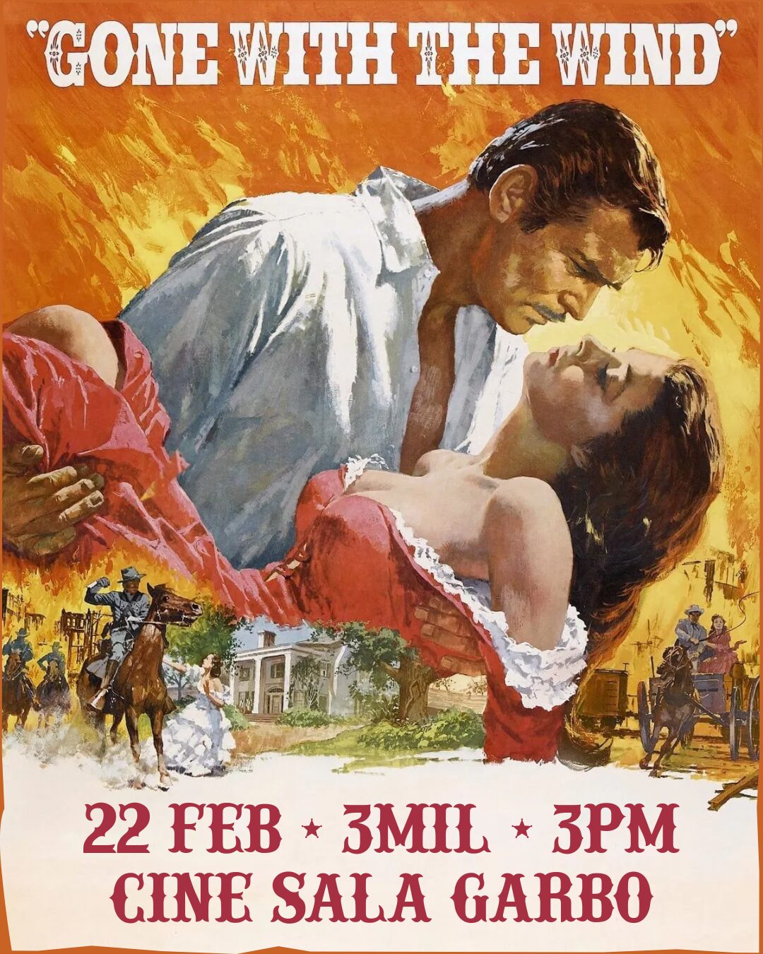 Sinopsis: Georgia, 1861. En la elegante mansión sureña de Tara, vive Scarlett O’Hara (Vivien Leigh), la joven más bella, caprichosa y egoísta de la región. Ella suspira por el amor de Ashley (Leslie Howard), pero él está prometido con su prima, la dulce y bondadosa Melanie (Olivia de Havilland). En la última fiesta antes del estallido de la Guerra de Secesión (1861-1865), Scarlett conoce al cínico y apuesto Rhett Butler (Clark Gable), un vividor arrogante y aventurero, que sólo piensa en sí mismo y que no tiene ninguna intención de participar en la contienda. Lo único que él desea es hacerse rico y conquistar el corazón de la hermosa Scarlett.